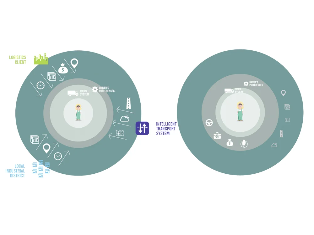 We foresee the merge of self-employed truck drivers in 2030. The speculation roots from primary research with truckers who consider freedom as a crucial aspect of the occupation. With the support of automation technologies, infrastructure evolution and data analytics, truck drivers will be able to deal with freight transport tasks even on the road.